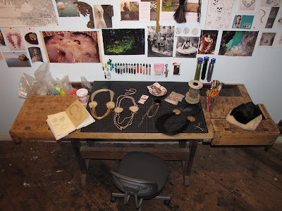 In the eternal words of Europe, It’s The Final Count Down… I’ve only got a few days left until my upcoming deadline of a photo shoot, and my studio is a mess as I try to get organized for the documentation. The picture is of the mourning necklaces that I’ve been working on spread out all over my work bench. Also, I’d like to point out that my grandmother made that work bench… pretty amazing!!! I’ve got three necklaces, two brooches, and four rings to finish by the end of the week, how will I ever stay sane!